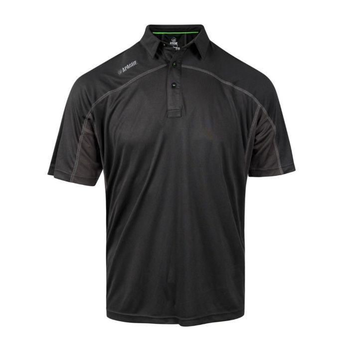 The design is clean and classic: a self-fabric collar, a three-button placket, and high-quality embroidered Apache logos on the right chest and neck. The result is a smart, professional look suitable for job sites, transport, workshops or customer-facing roles.