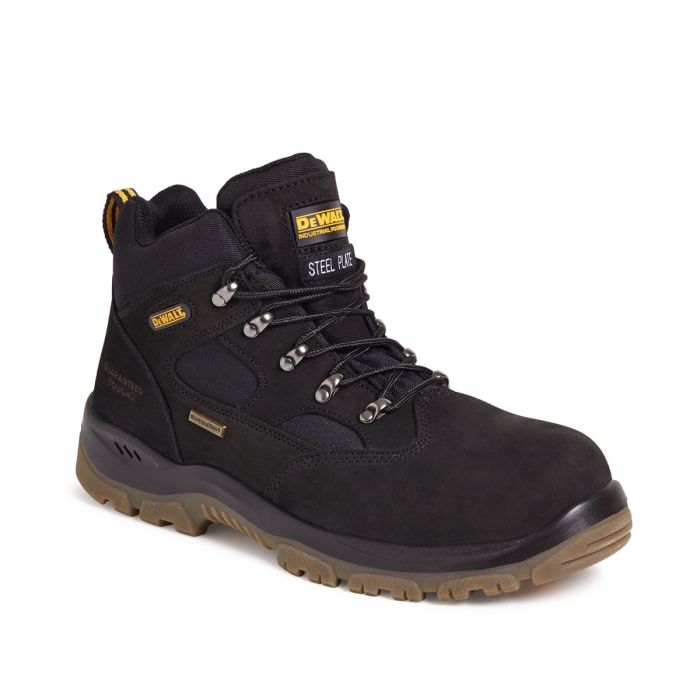 Meet the DEWALT Black Challenger—a high-spec waterproof safety boot built to handle tough sites and long shifts. The full-grain nubuck leather upper is paired with a waterproof, breathable membrane to keep feet dry without trapping heat. A padded tongue and collar reduce pressure points for superior comfort, while the PU comfort insole adds extra cushioning underfoot.