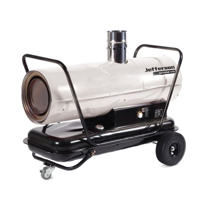 Designed for professional indoor heating where air quality matters, the Jefferson 170,000 BTU Indirect Oil Heater delivers powerful, clean hot air through a heat exchanger while safely exhausting combustion gases. With a large 80-litre fuel tank, robust safety controls, and a built-in trolley for easy transport, it is ideal for workshops, warehouses, marquees, and commercial spaces that require reliable, long-running heat.