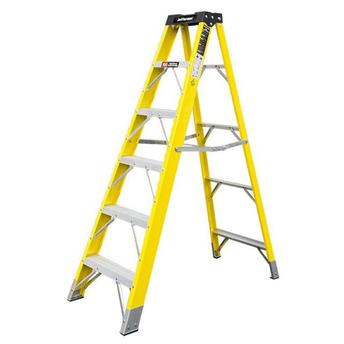 The Jefferson Tools JEFLADFGLS06 6 Tread Fibreglass Step Ladder is designed for professionals who need safe, stable access at mid-height working levels—ideal for maintenance, installation, inspection, and trade applications. Built with fibreglass stiles, it’s a practical choice in environments where non-conductive access equipment is preferred, without compromising strength or durability.