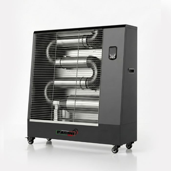 Cold doesn’t just slow people down, it slows productivity. The Pacini PC1600 16kW Infrared Industrial Diesel Heater is made for busy workshops and large working spaces where you need strong, targeted warmth without the roar of a high-speed fan. Using efficient tubular burner technology with a cleaner-combustion ceramic honeycomb, it delivers low-noise infrared heat, simple touch-key control, and a generous 42L tank for long running comfort across industrial environments.