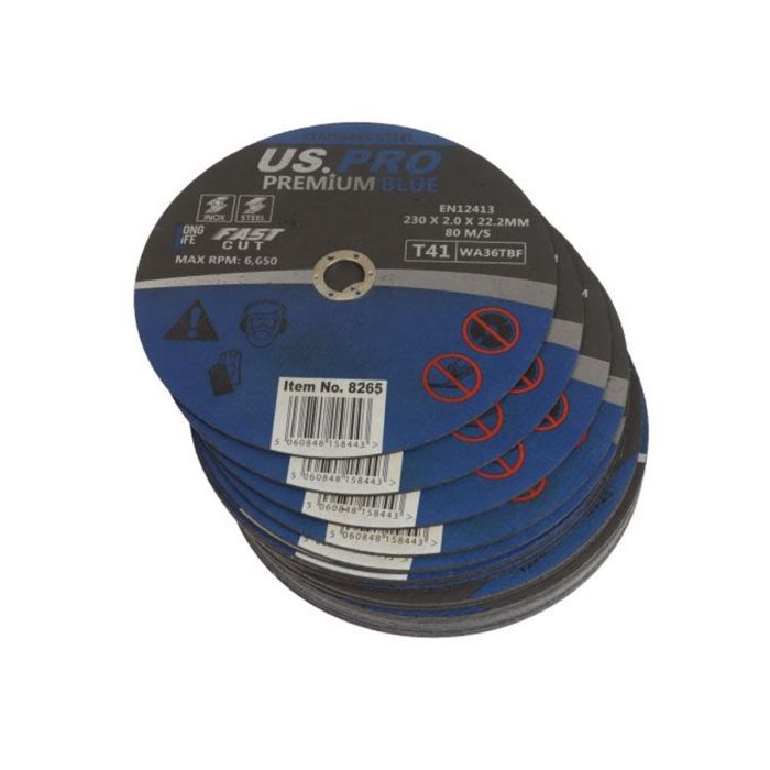 US PRO 8265 Premium Blue Metal Cutting Discs 230 × 2.0 × 22.2mm (Box of 100)
